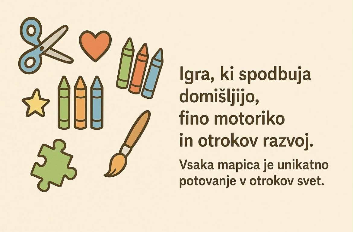 OTROKOVA MAPICA je ročno izdelana interaktivna mapica, polna zabavnih aktivnosti, ki otroke spodbujajo k raziskovanju, učenju in igrivi radovednosti.
